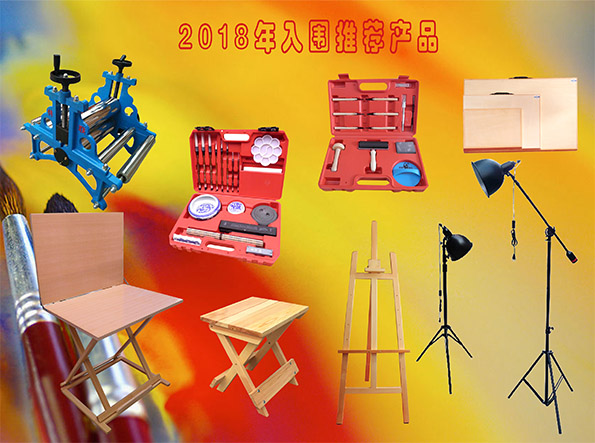 本次入圍的產(chǎn)品有:版畫(huà)工具、工作臺(tái)、國(guó)畫(huà)工具、畫(huà)板、畫(huà)架、靜物臺(tái)、小型版畫(huà)機(jī)、寫(xiě)生燈、寫(xiě)生凳、寫(xiě)生靜物等多種美術(shù)系列產(chǎn)品。